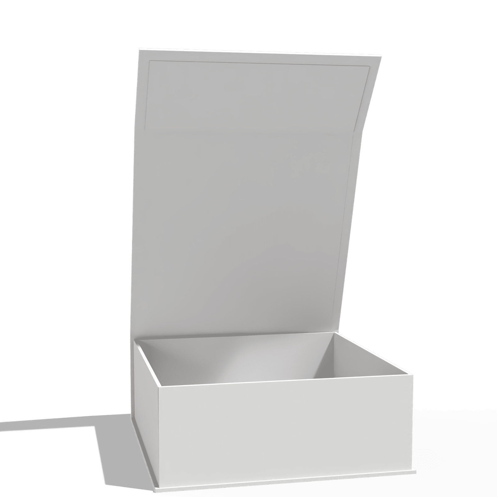 Gift box with attached lid made of cardboard of customizable thickness, dimensions 28 x 20 x 10 cm, ideal for wrapping gifts and accessories. The white color gives a modern, elegant look that exudes luxury, while the coated surface allows for high-quality printing or the addition of special touches such as gold foil or embossing. We also offer full customization in colors and sizes, with the ability to add your logo to make the box part of the luxurious gifting experience.