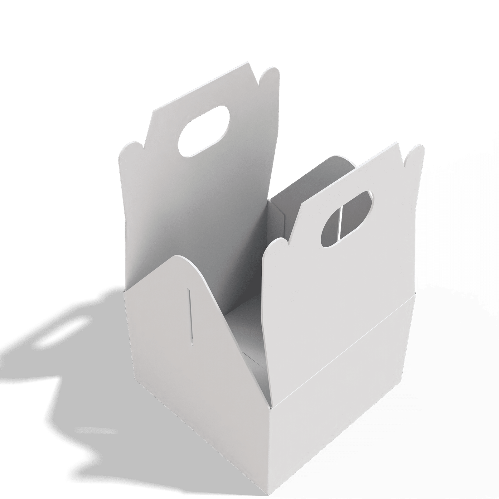 Stylish bag design kids meal box made of thick, customizable food-safe cardboard, 20 x 15 x 12 cm, suitable for kids’ meals at restaurants or events. The design features a top handle for easy carrying, while the surface treated with a protective coating adds durability and reflects the quality of the colors. We also offer full customization of colors and logos to reflect your brand identity and turn packaging into an enjoyable experience.
