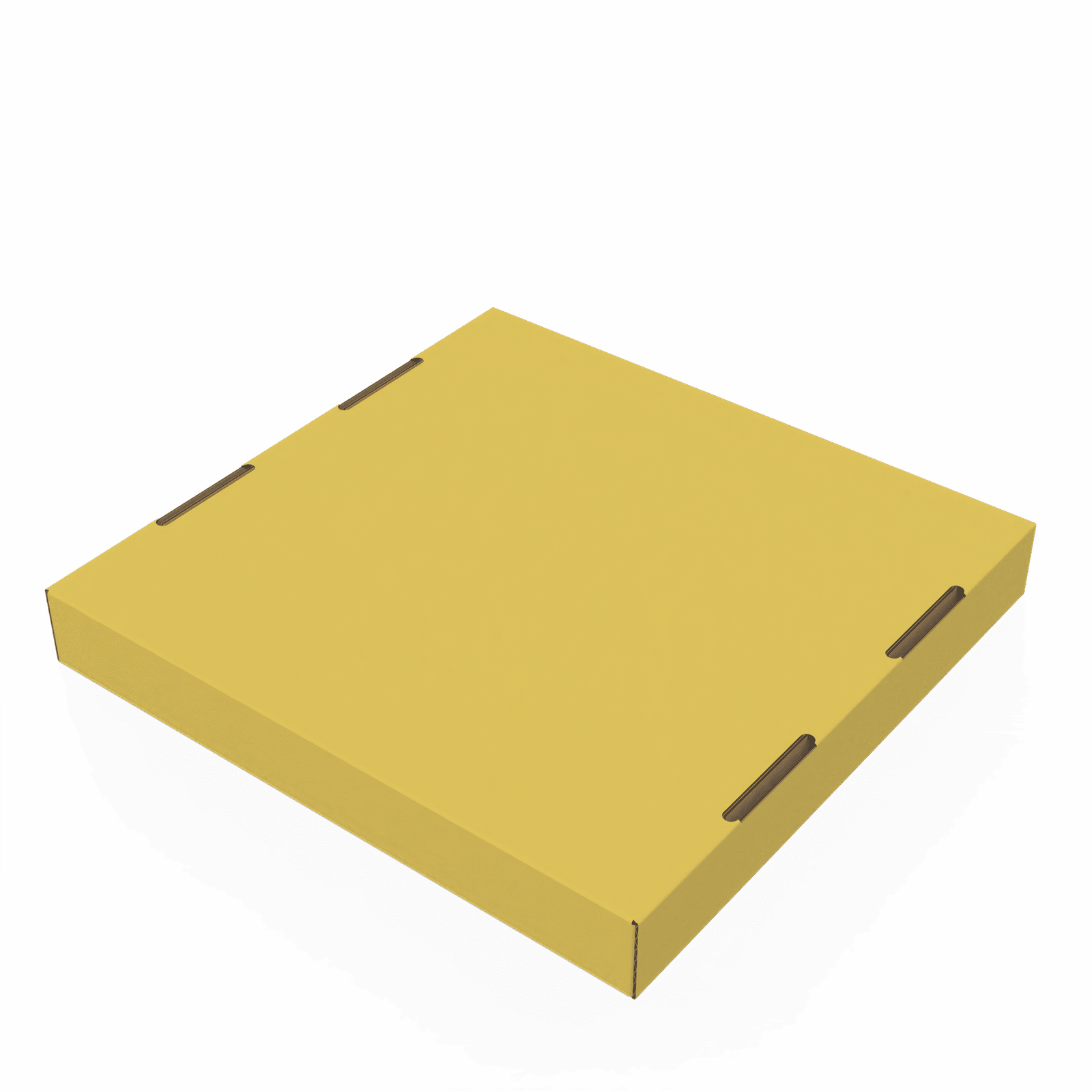 Square pizza box made of high-strength, variable-thickness, integrated cardboard, measuring 28 x 28 x 4.5 cm for balance of size and height. A separate cover provides greater display flexibility, while a matte-finished surface adds an elegant touch. These features are supported by flexible customization options for colors and logos to create your own unique mark.