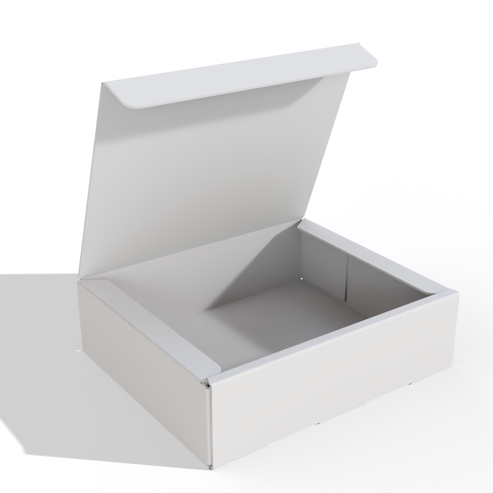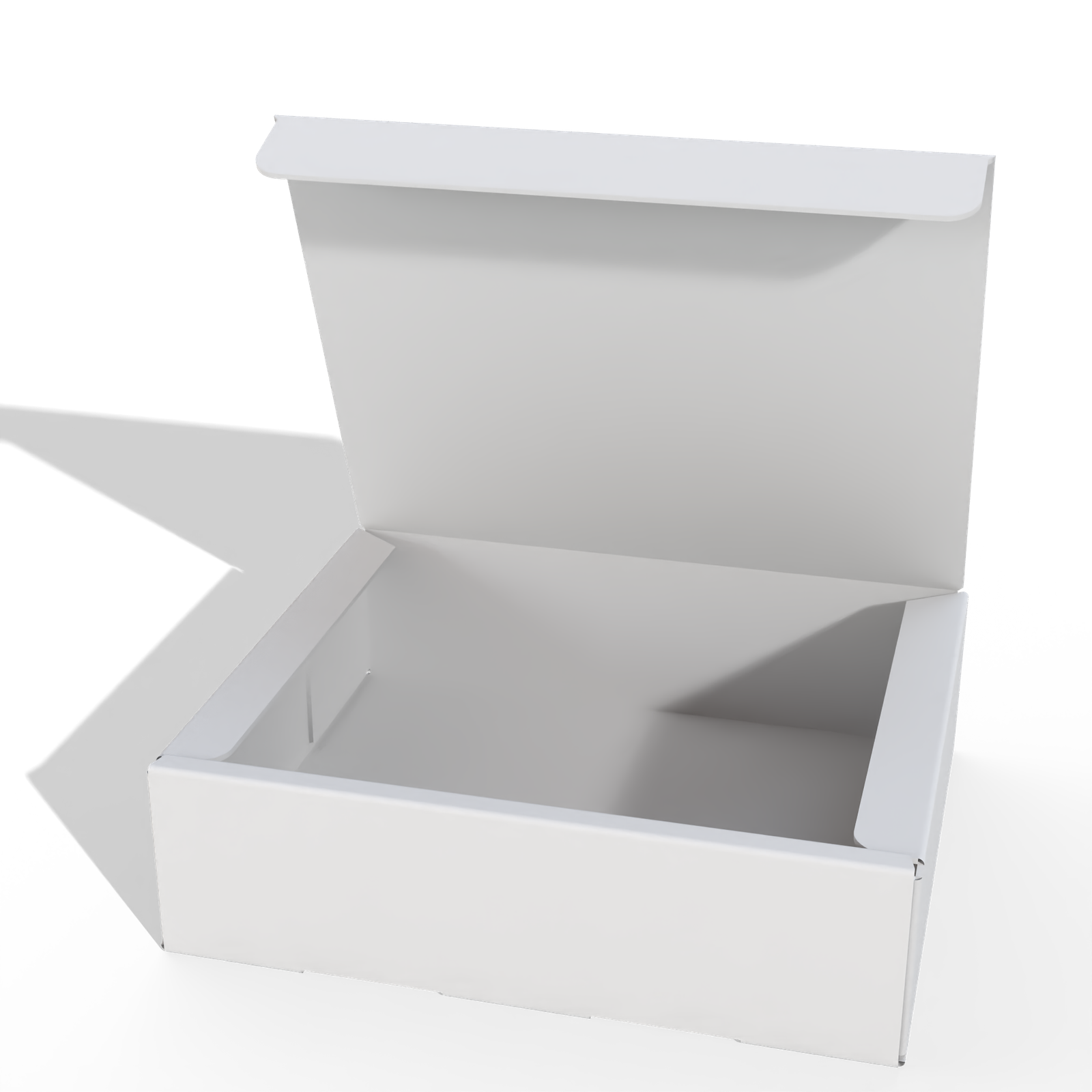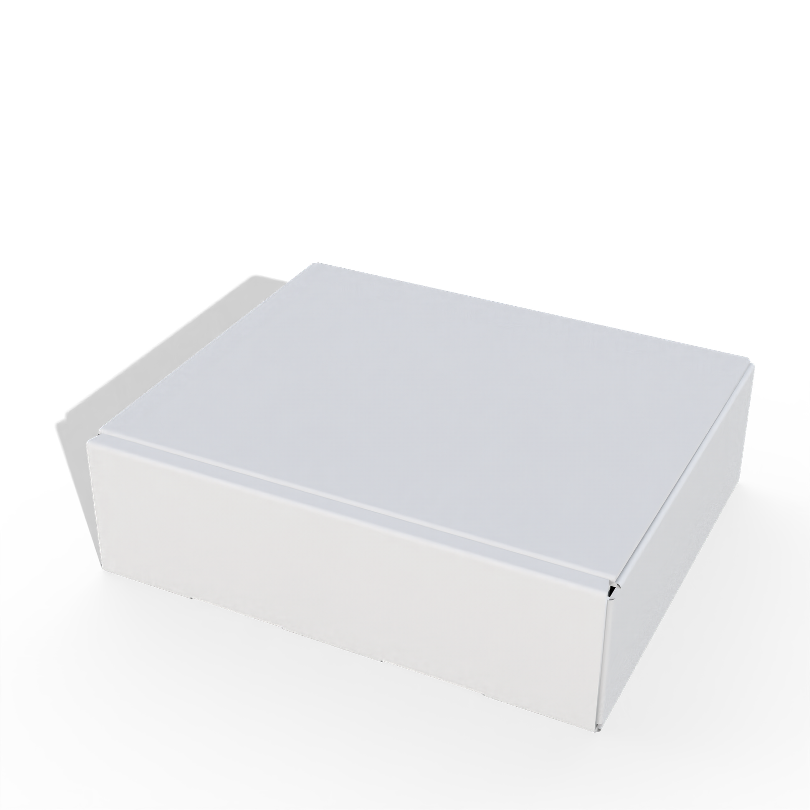 علبة حلويات مستطيلة الشكل بغطاء متصل مصنوعة من كرتون أبيض مطلي بسماكة عالية، بأبعاد 18x15x5 سم مناسبة لتعبئة وعرض للحلويات. تصميم الغطاء المتصل يمنح إغلاقًا عمليًا وآمنًا، بينما السطح المعالج قابل لتوفير حماية للطباعة عالية الجودة و لإبراز التميز . كما نتيح التخصيص الكامل في الألوان والمقاسات لتناسب مختلف أنواع الحلويات الشرقية والغربية.