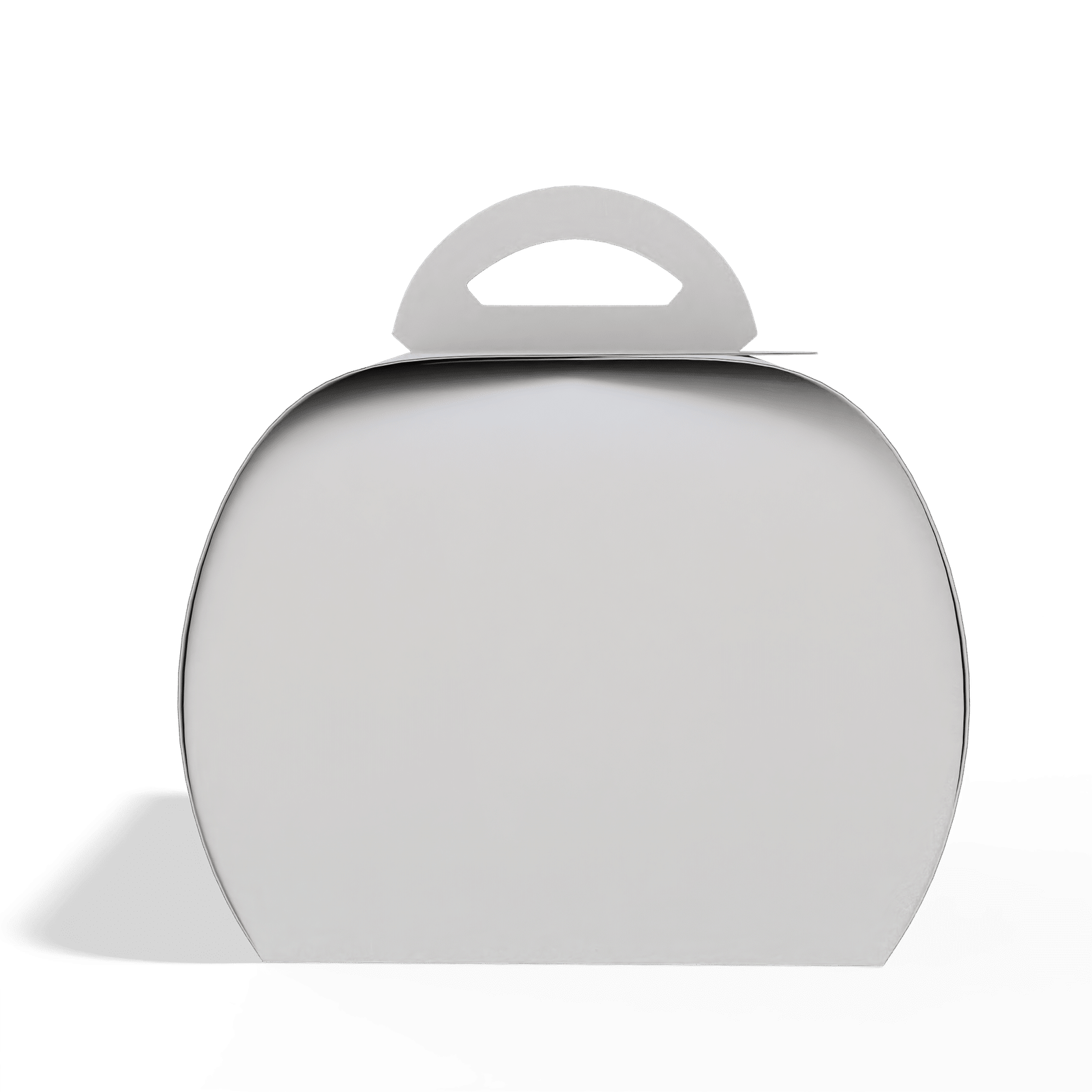 علبة كيك مقوّسة مصنوعة من كرتون ابيض قابل للتخصيص، مصممة بشكل انسيابي يتيح تغليف المنتجات الكيك والهدايا بطريقة عملية ومظهر متوازن.
