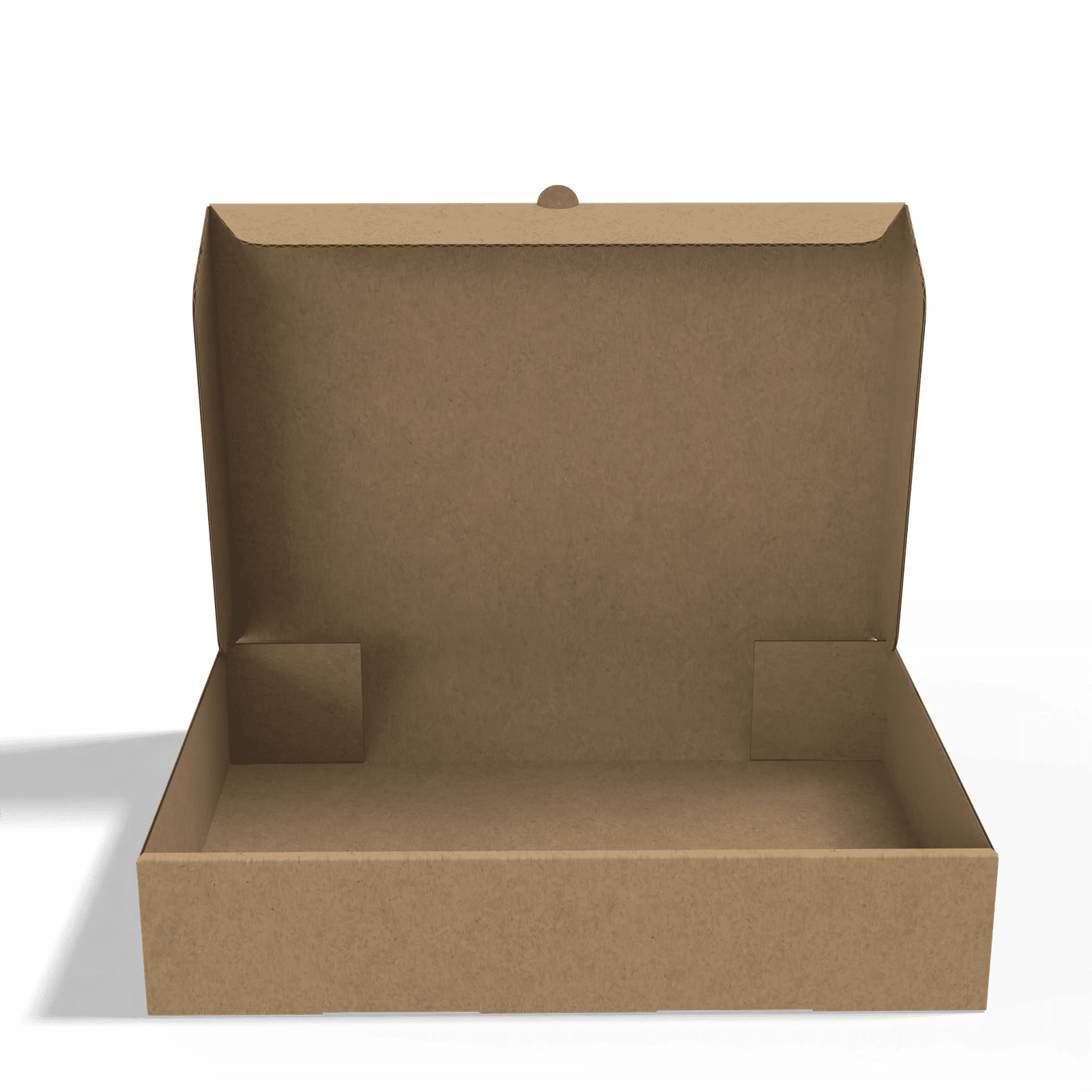 Family size donut box with attached lid made of multi-layered brown corrugated cardboard (kraft), 28*28*8 cm, suitable for storing and displaying up to 12 donuts. The attached lid design provides a practical and easy-to-use seal, while the natural kraft color reflects a modern and eco-friendly look. We also offer full customization of colors and logos so that the box becomes an extension of the bakery or store’s identity.