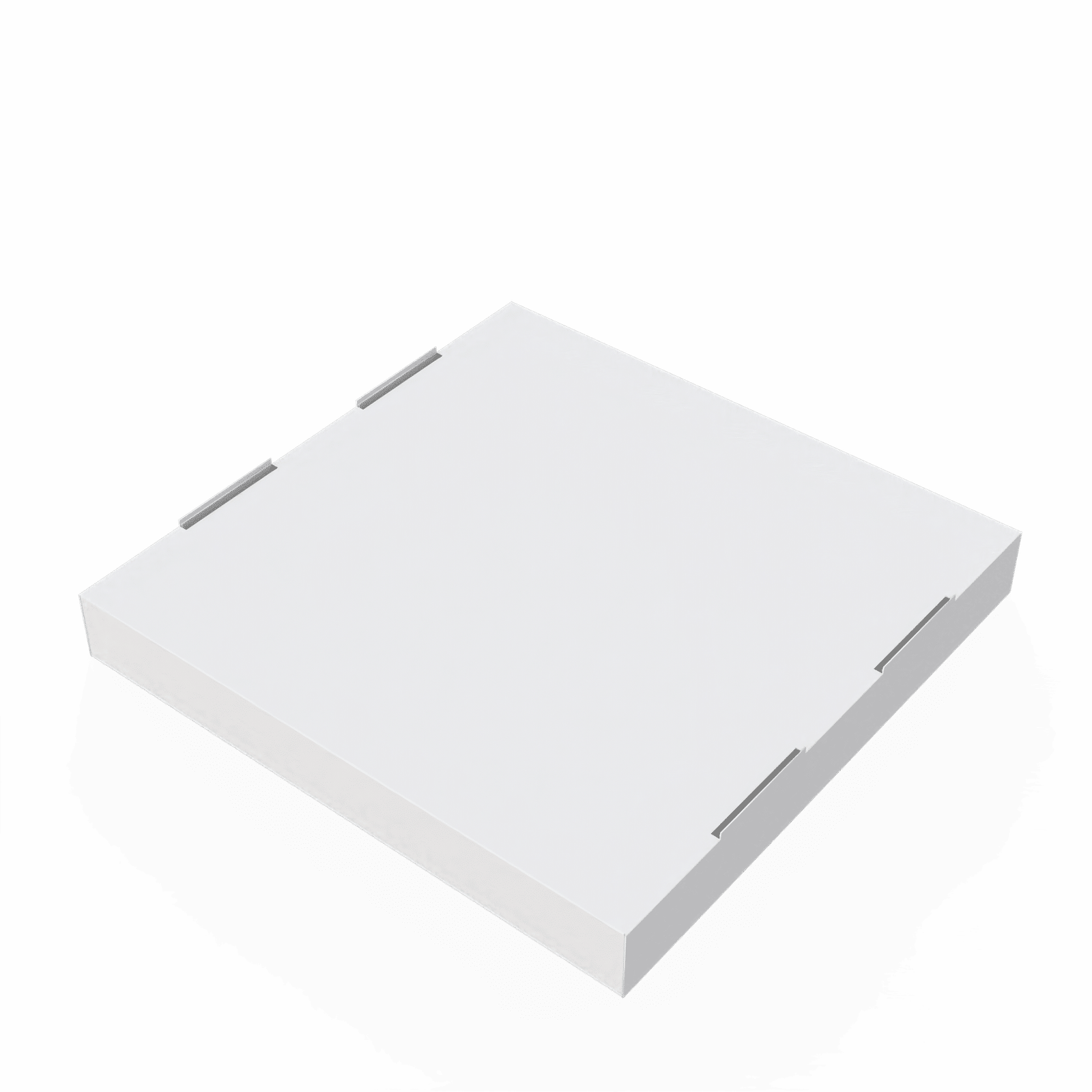 Customizable thickness white cardboard square pizza box, 26x26x4 cm for popular medium sizes. A separate lid provides greater flexibility in serving, while a protective surface protects against moisture. We also allow you to modify dimensions and colors, and you can add your logo to enhance your brand identity.