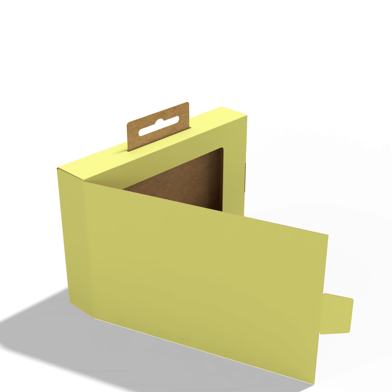 تأتي بنافذة شفافة تعرض المحتوى بوضوح، بينما تسمح علاقة التعليق العلوية بعرض العلبة على الستاندات أو رفوف العرض. تحافظ الطيّات الدقيقة على صلابة الهيكل عند الاستخدام والتكديس.