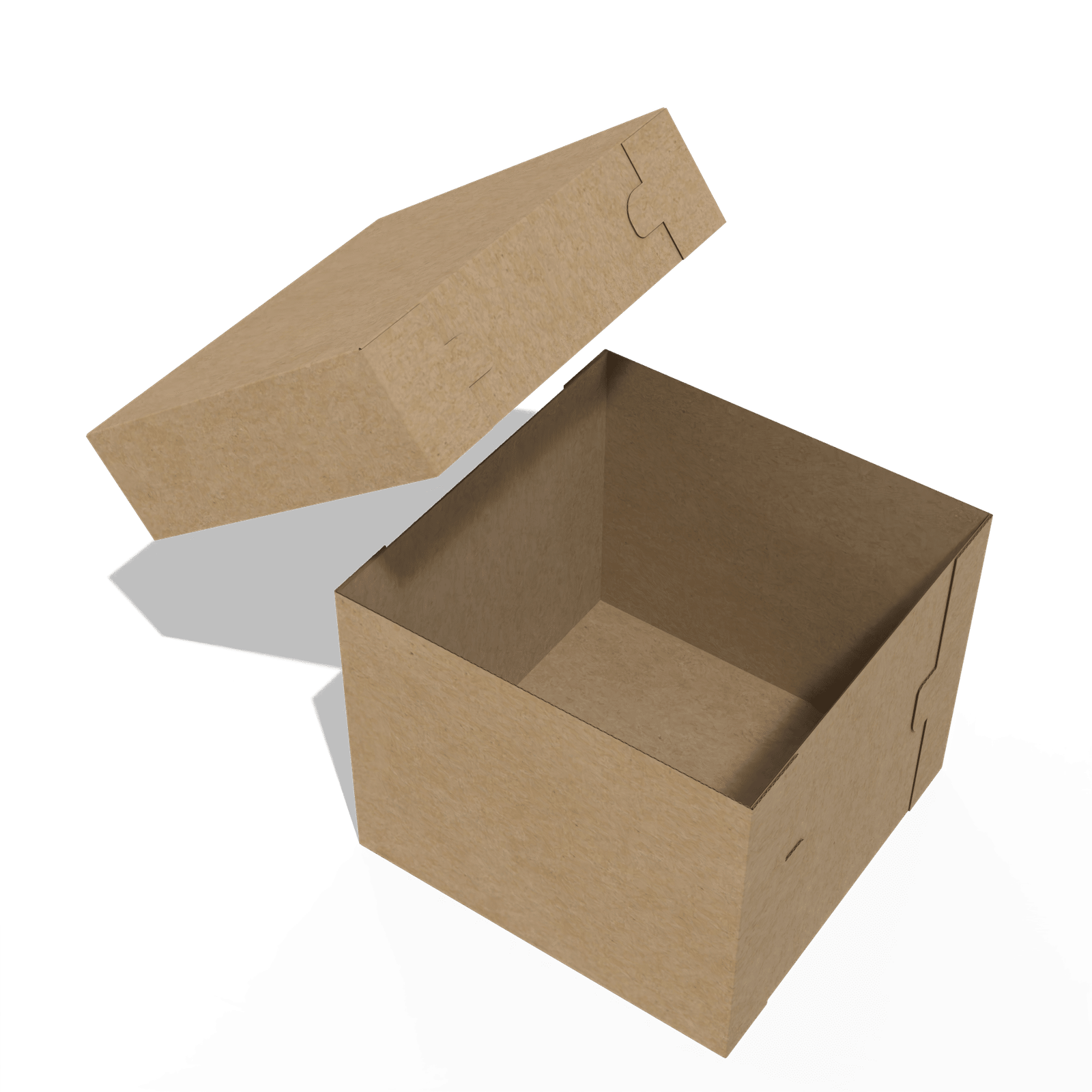 علبة كيك رباعية الشكل مصنوعة من كرتون مضلع (كروكيتدت) عالي المتانة، بأبعاد 14x14x9 سم تتميز بغطاء منفصل يمنح مرونة وسهولة في الفتح والإغلاق، بينما السطح الخارجي مصمم للطباعة عالية الجودة أو اللمسات التسويقية المميزة. إلى جانب ذلك، يمكن تخصيصها بالألوان والمقاسات مع إمكانية إضافة شعار العلامة التجارية لإبراز هوية المتجر أو المخبز.